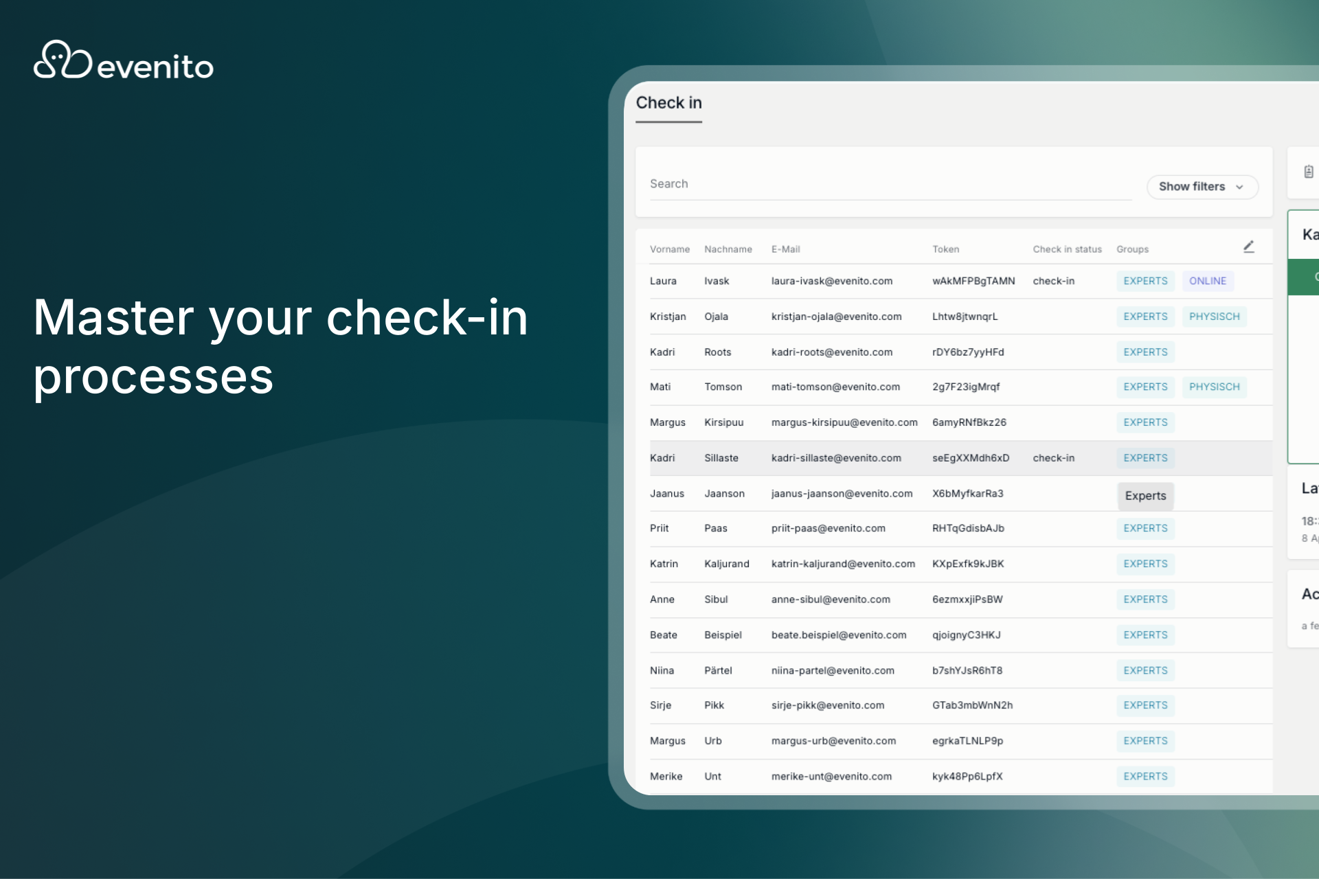 In this course, you will learn the various ways of managing participants on the day of the event. You'll learn how to manually check in and check out in the back office and export the data for your follow-up. We'll show you the functions of the evenito check-in app for iOS and Android, including offline mode, the quick scan function and live synchronization of the number of participants. Finally, you will learn how to prepare the badge printing module so that you can react flexibly to individual printing requirements on site.